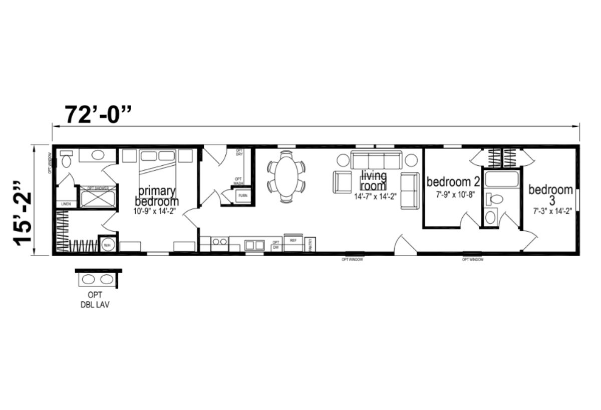 The Bay Springs / C825 built by Skyline Homes is a manufactured home featuring 1092 square feet of thoughtfully designed space with 3 bedrooms and 2 bathrooms. Its open living area creates an inviting atmosphere, while the kitchen offers modern convenience. The primary suite provides a peaceful retreat with its own private bathroom. Two additional bedrooms add flexibility for family, guests, or a home office. The C825 is a perfect blend of comfort and practicality.