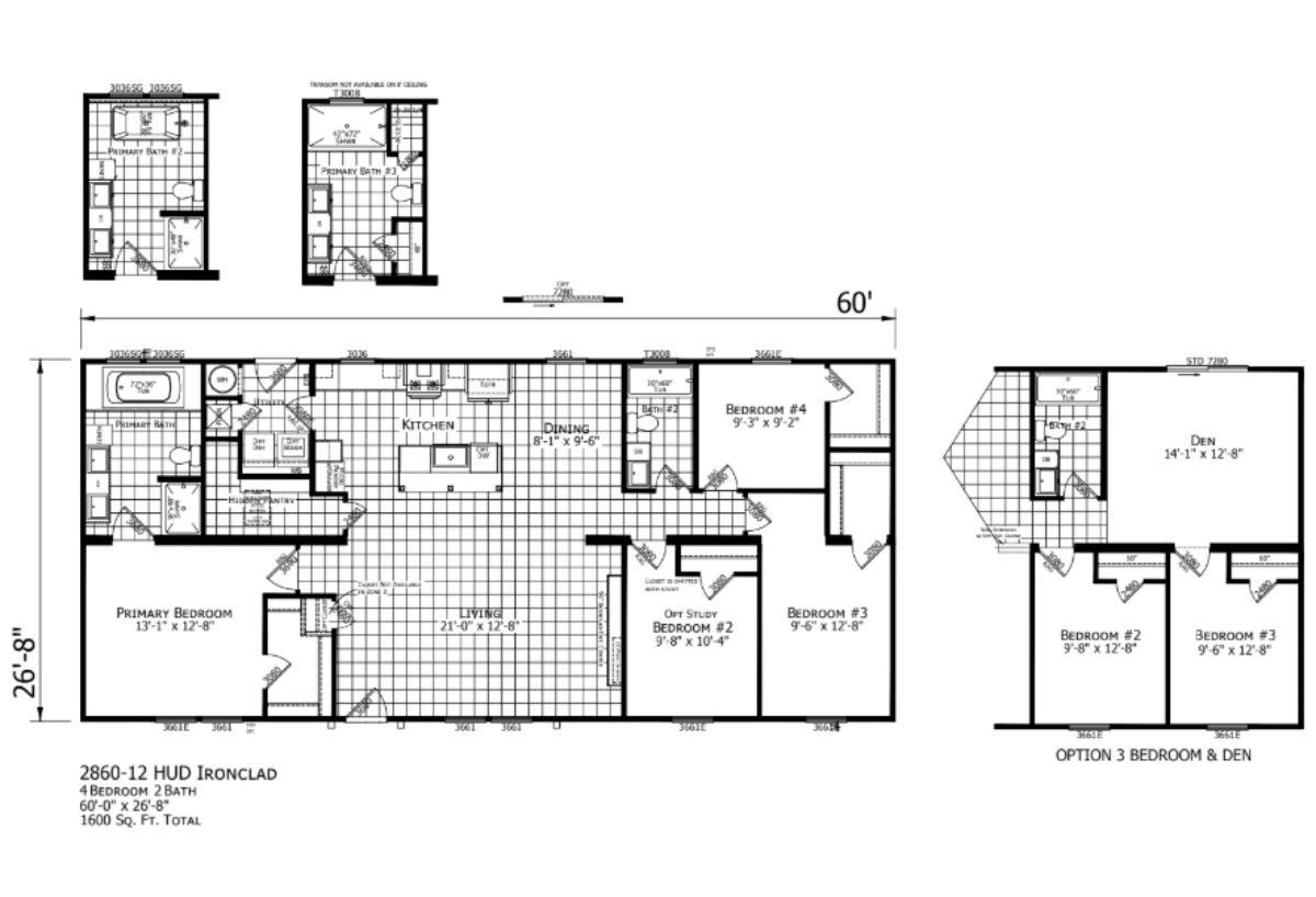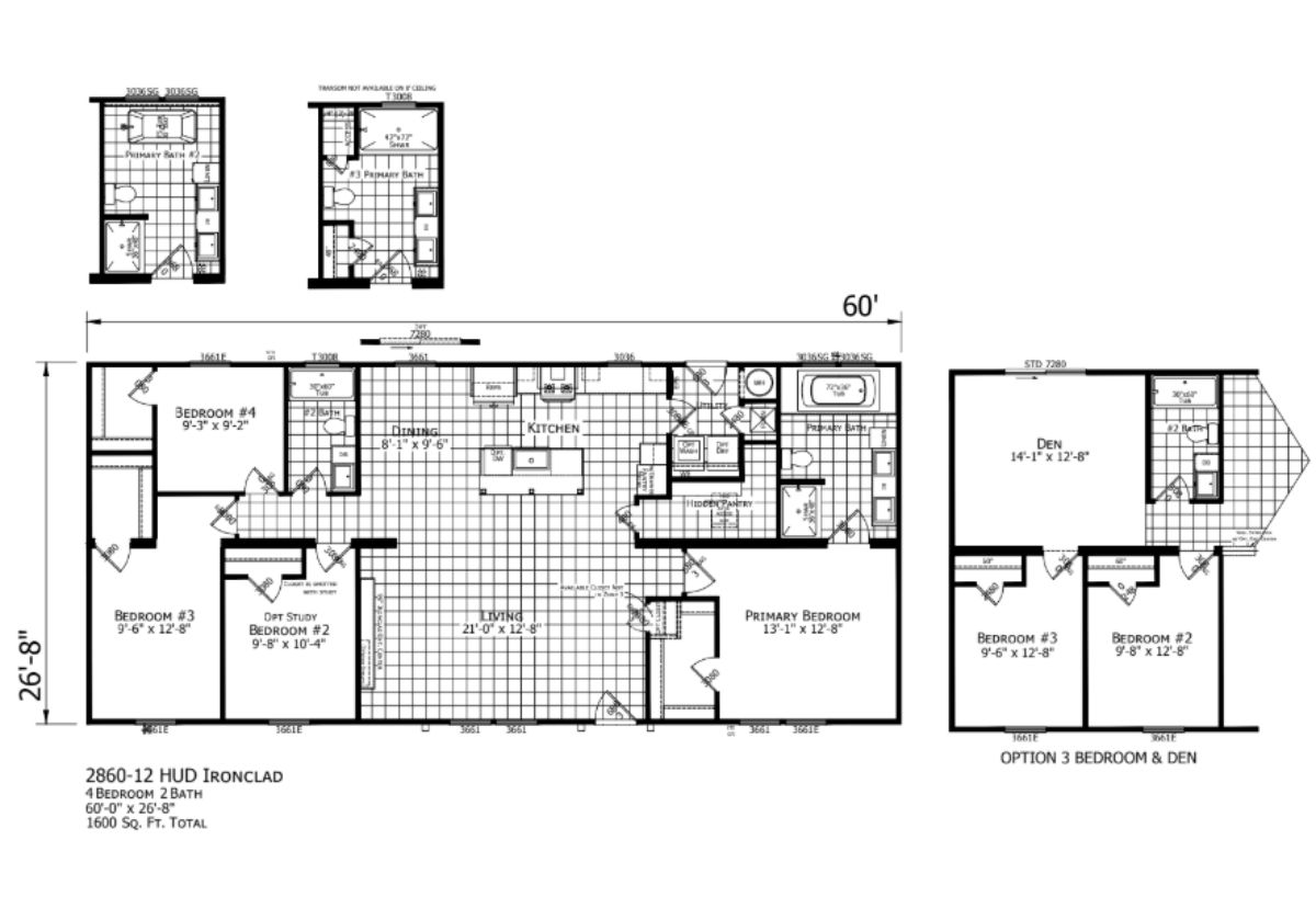 The Ironclad / 2860-12 built by Champion Homes offers 1600 square feet of thoughtfully designed living space, featuring 4 bedrooms and 2 bathrooms. The open-concept layout enhances the flow between the living room, dining area, and kitchen, making it ideal for entertaining. The primary suite provides a private retreat, while additional bedrooms offer flexibility for family or guests. The 2860 blends modern style with everyday comfort, creating a home that meets a variety of needs.
