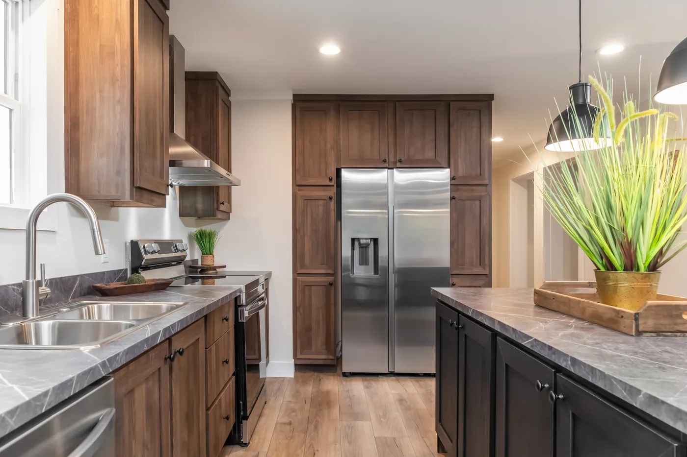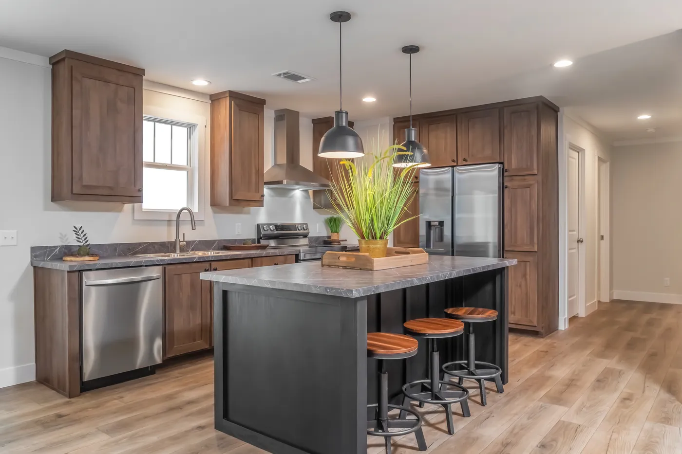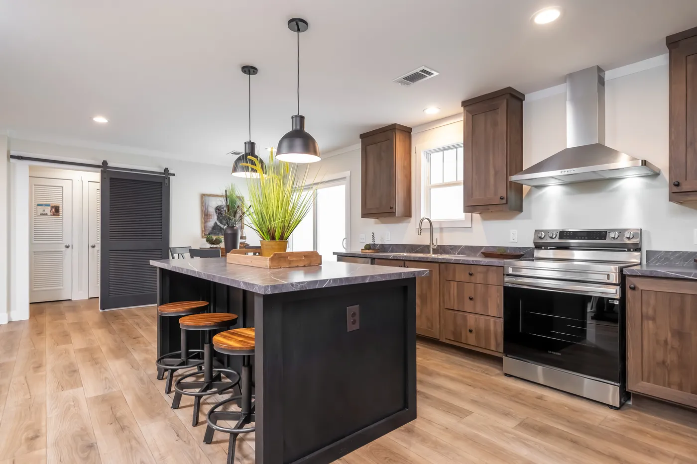Kitchen Cabinetry: Kitchen Perimeter Cabinets - Studio Beige or Bishop Oak / Island Bar Cabinets - Onyx Black or Plover