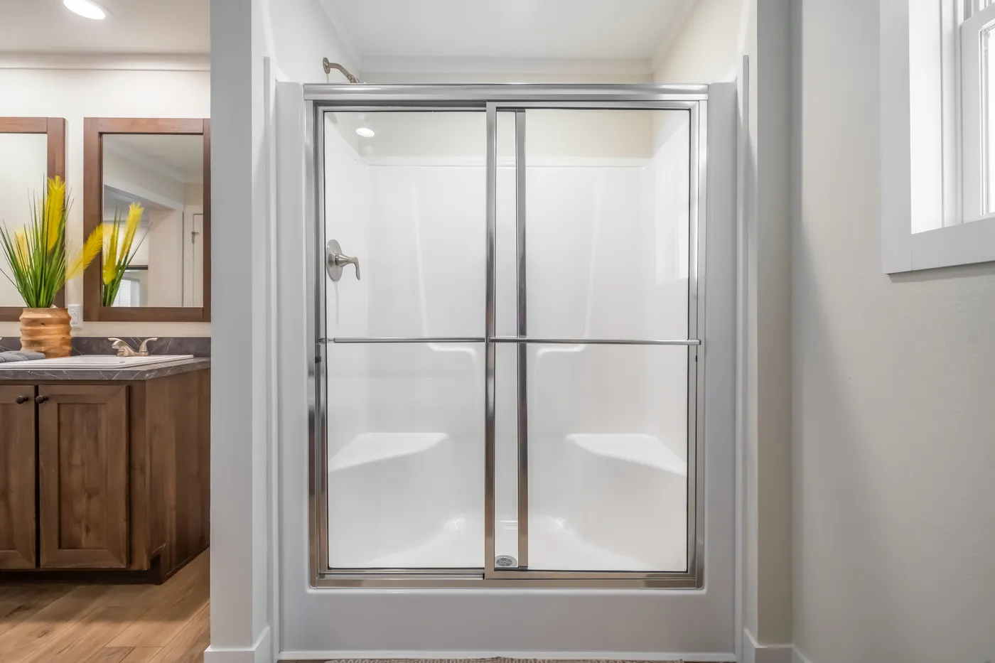 Bathroom Shower: 60" Fiberglass Double Seat Shower w/ Framed Door (Most Baths) - See Print / Fiberglass 60 x 32 Tub Shower - Center Drain guest baths