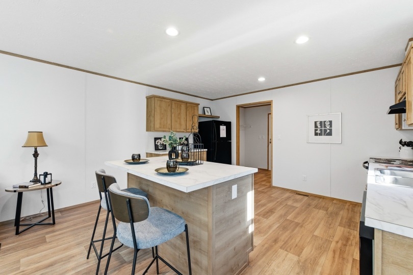 The Phoenix / 32483B built by Cavco Moultrie offers a bright and welcoming layout with 3 bedrooms, 2 bathrooms, and 1440 square feet. The 32483B features an open living room that flows into a roomy kitchen with a center island, giving plenty of space for cooking and gathering. The master bedroom sits privately with its own bath, while two additional bedrooms share a convenient second bath. This comfortable design provides easy living for everyday life.