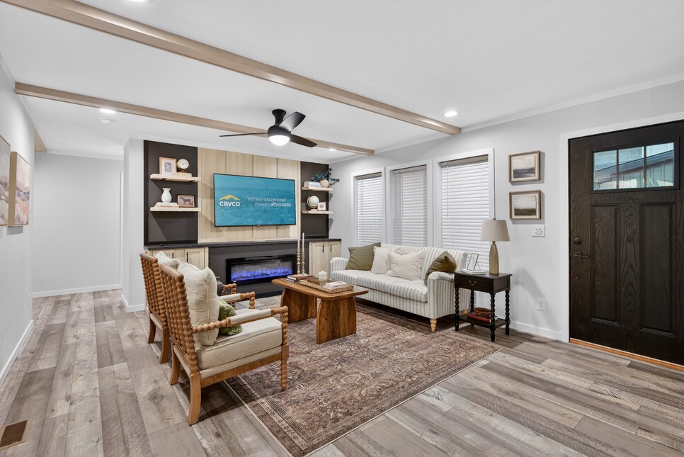 Axis 32563N built by Moden is a bright and welcoming home designed for easy living. With 1,680 square feet, this 3 bedroom, 2 bathroom layout offers space for everyone to feel at home. The large living room sits at the heart of the home and flows into the dining area and kitchen, creating a smooth and open feel. The primary bedroom includes a roomy bath and walk-in closet, while two additional bedrooms share a second full bath. A covered porch adds extra charm and space to relax. The Axis 32563N blends comfort, function, and style into a home you will love every day.
