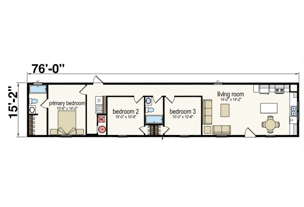Baths: 2 W x L: 15' 2" x 76' 0"