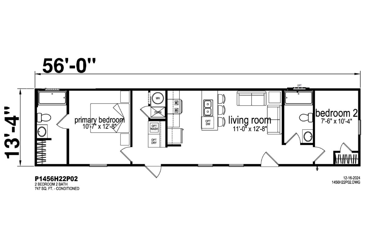 Baths: 2 W x L: 13' 4" x 56' 0"