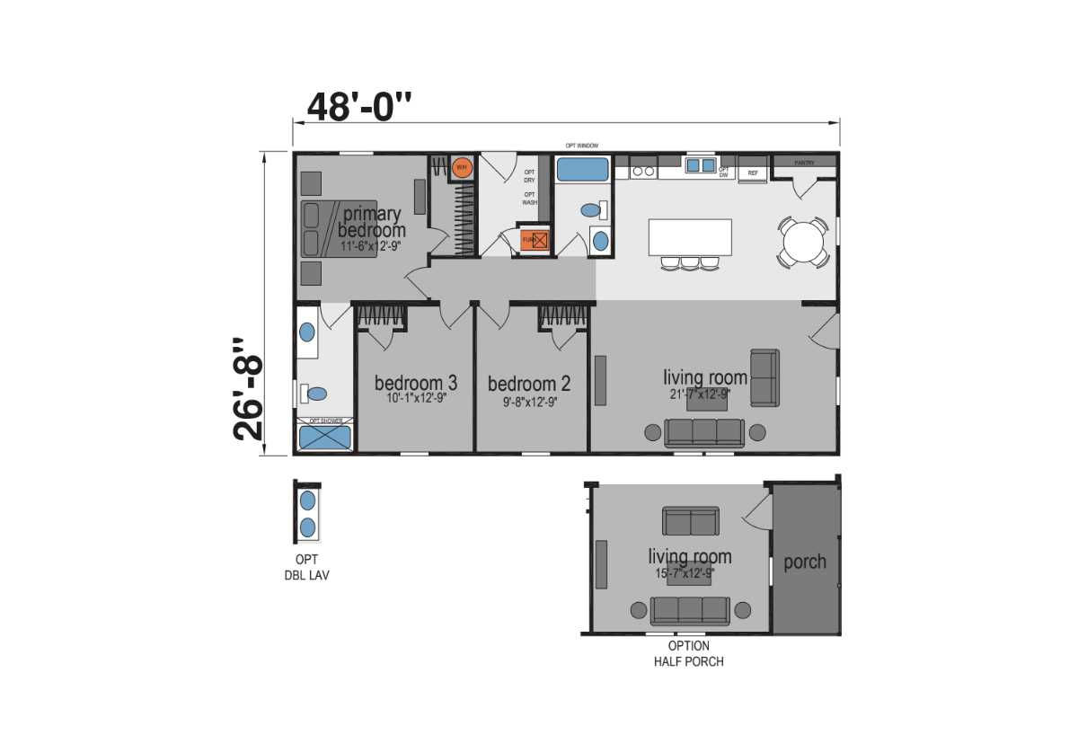 Baths: 2 W x L: 26' 8" x 48' 0"