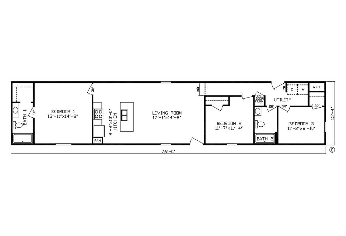 Baths: 2 W x L: 15' 4" x 76' 0"